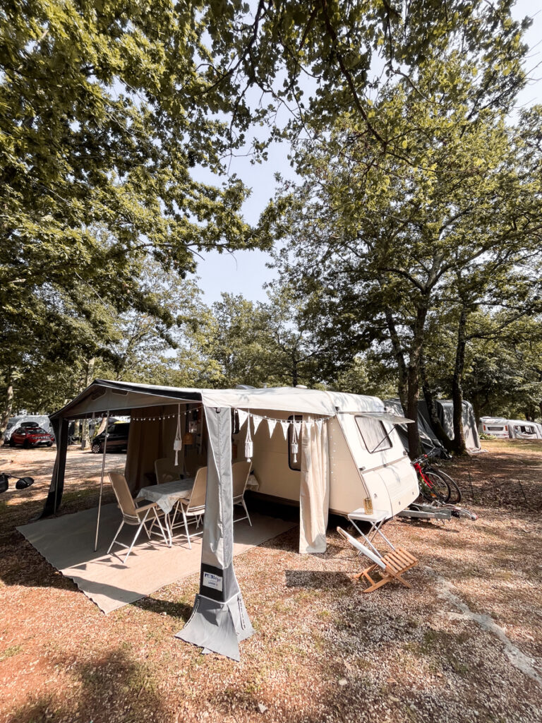Unser Pfingsturlaub war diesmal eine ziemlich spontane Sache – gerade mal sechs Wochen vorher entschieden wir uns, loszufahren. Die Erwartungen waren dementsprechend gedämpft: „Nimm, was du kriegen kannst“ war unser Motto. Dass wir dann aber tatsächlich einen wunderschönen, schattigen Stellplatz auf einem großen, sauberen Campingplatz in der Nähe von Poreč ergattern würden, hätten wir nie für möglich gehalten!