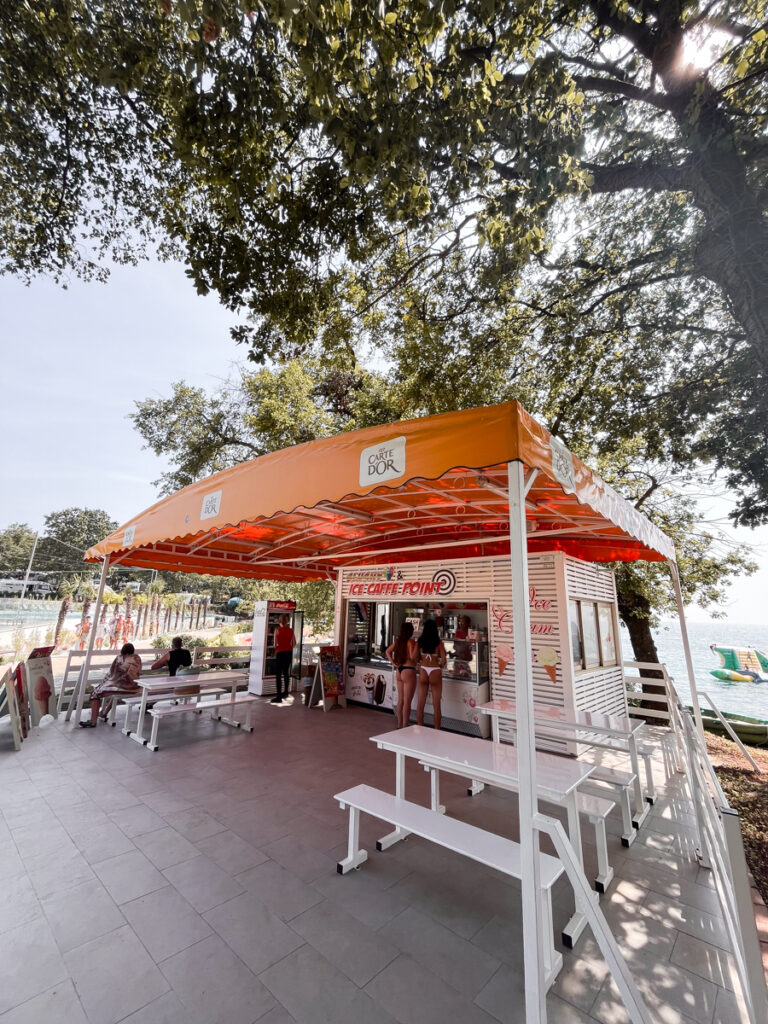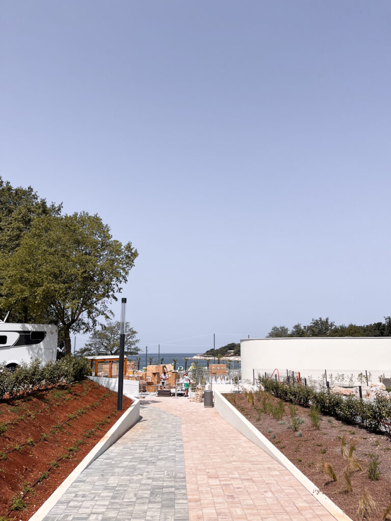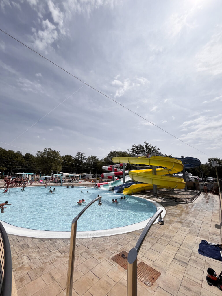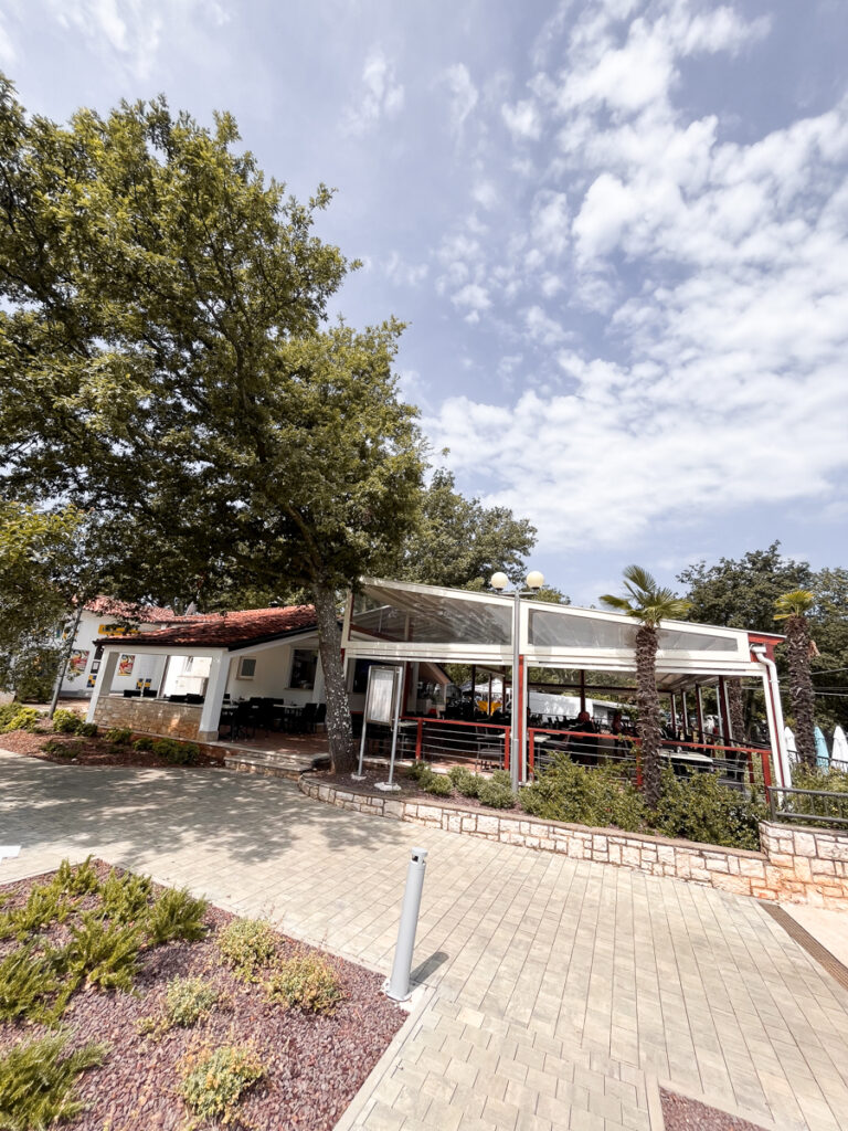 Der Platz liegt etwa 5 km südlich von Poreč und erstreckt sich über ein riesiges Areal mit vielen schattigen Stellplätzen – einige davon sogar direkt am Meer. Die Lage ist traumhaft!