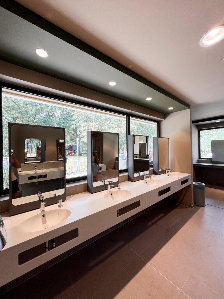 Die Waschhäuser sind teils frisch modernisiert und wirklich schön gemacht. Meist waren sie auch sauber – nur beim Reinigungstakt gibt’s Luft nach oben: Das Putzpersonal war meistens nur morgens kurz zu sehen. Da sind wir von anderen Plätzen etwas mehr Einsatz gewohnt.