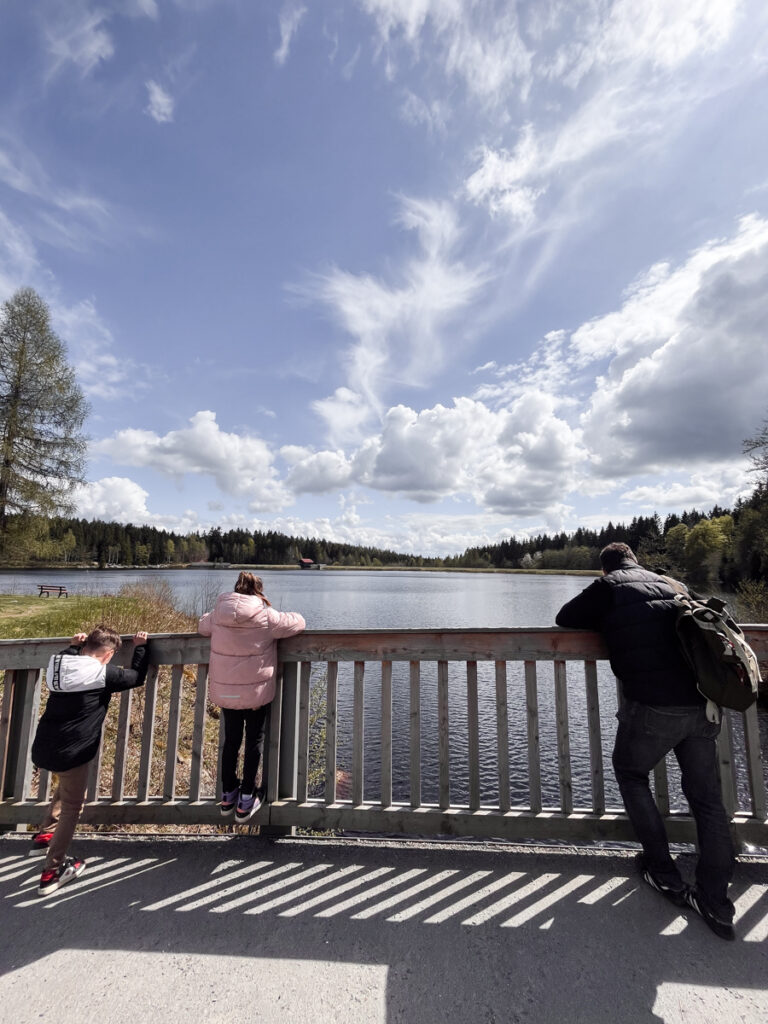 Das Beste: Der Fichtelsee ist nur ein kurzer Spaziergang entfernt. Und dort wartet nicht nur Wasser und Natur, sondern auch ein kleiner Abenteuerpfad für Kinder – der Barfußpfad. Schuhe aus, los geht’s über Steine, Holz, Sand und mehr. Ein Erlebnis, das unsere Kids gleich mehrfach ausprobieren wollten.
